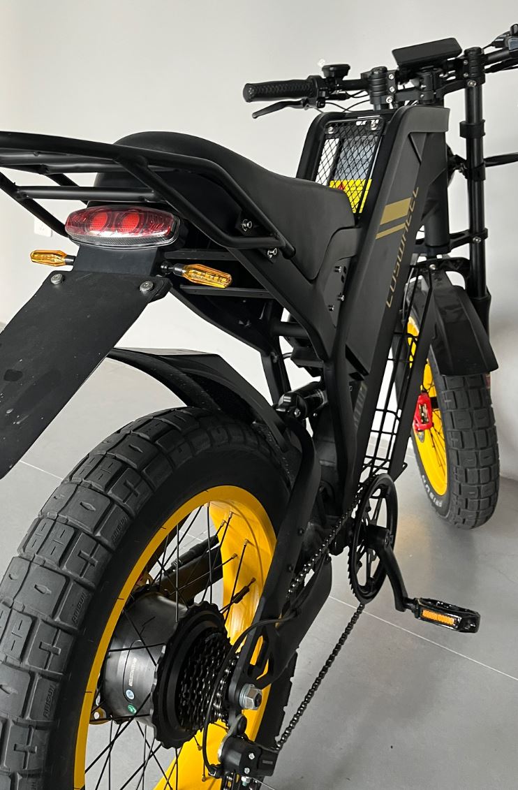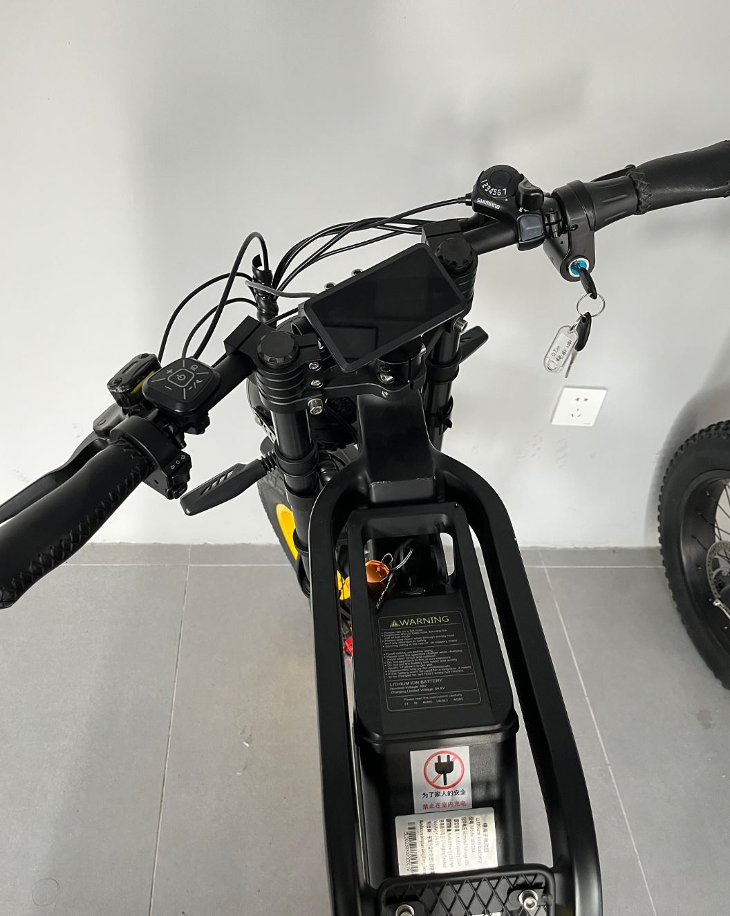 The Velocifero VLF MAD 2000W (2025) is a stylish and compact electric bike from Italy, built for urban mobility and off-road fun. It features a 1600W motor with a 960 Wh battery, offering a 40 km range and a top speed of 45 km/h. The bike supports Eco, Sport, and Sport Plus riding modes for versatile performance. Designed with an earless front fork system, double shock absorbers, and tubeless 145/70-6 tires, it ensures a smooth ride. Equipped with mechanical disc brakes (140 mm), it provides reliable stopping power. Available in Red, Yellow, and Black, it’s a perfect blend of power and style.